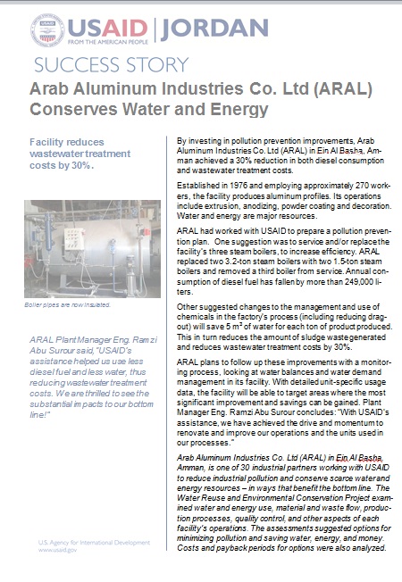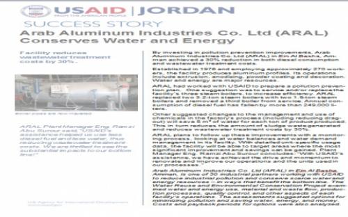 On 5th of May,2015, ARAL participate in USAID Water Reuse and Environmental Conservation Project which was held in the Kempinski Hotel - Amman, shareing its successful story in reducing wastewater treatment costs by 30%.
