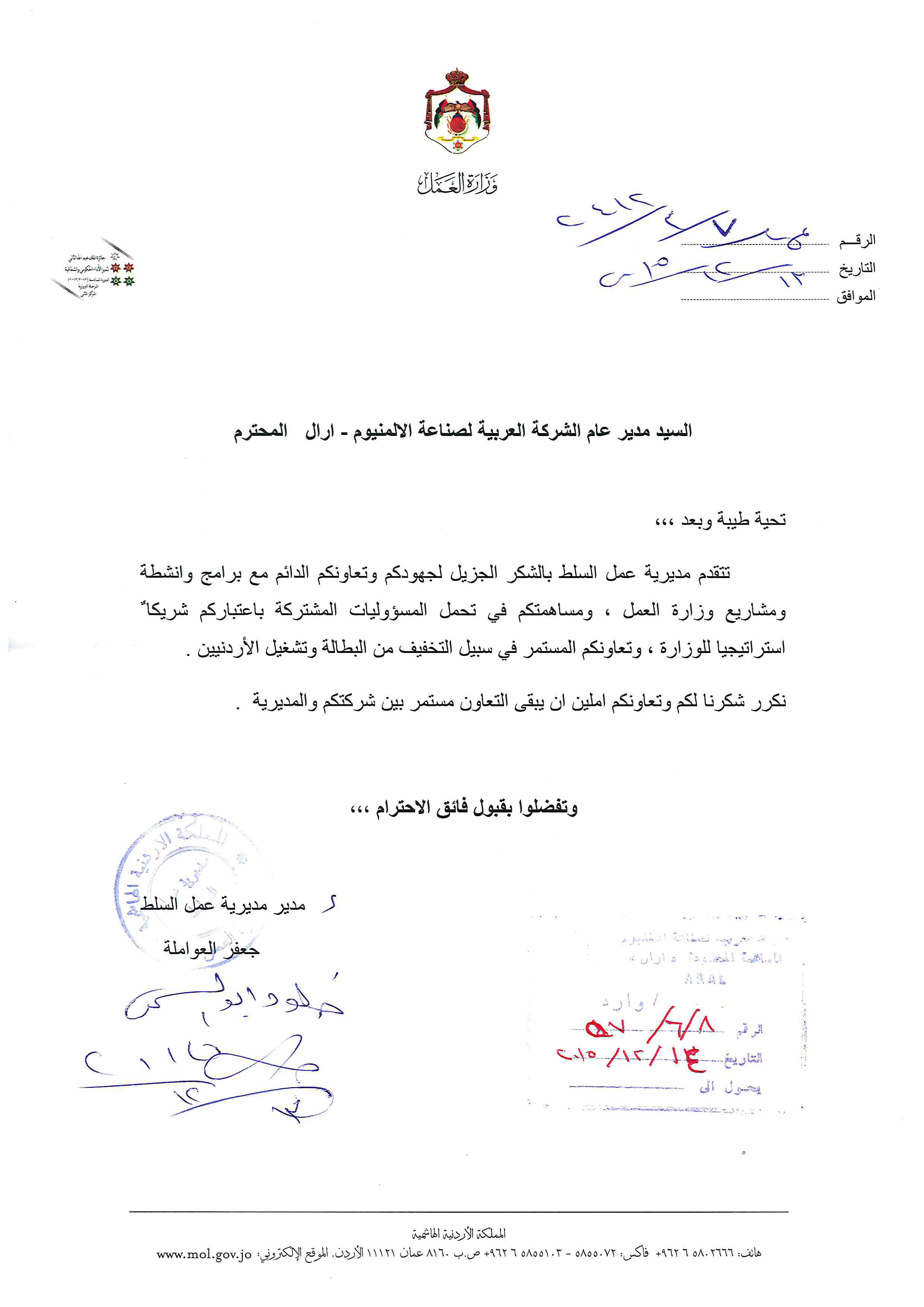 Aral's effort in supporting the ministry of labor activities was appreciated by a letter that sent from Salt work Directorate.