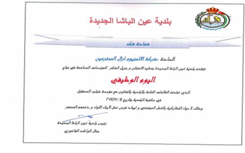 Certificate of Appreciation for Ain Albasha municipality