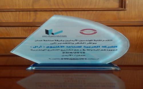 Arab Aluminum Industry Co. LTD (ARAL) was awarded by Jordan Engineers Association and Amman Chamber of Industry as appreciation of supporting engineering graduation projects and sientific researchs, in a cermony that held in Philadelphia University on Saturday 23rd, Apr.2016
